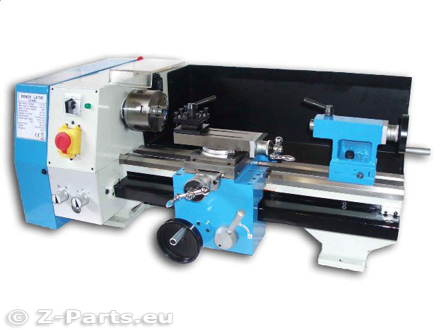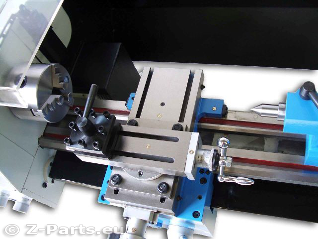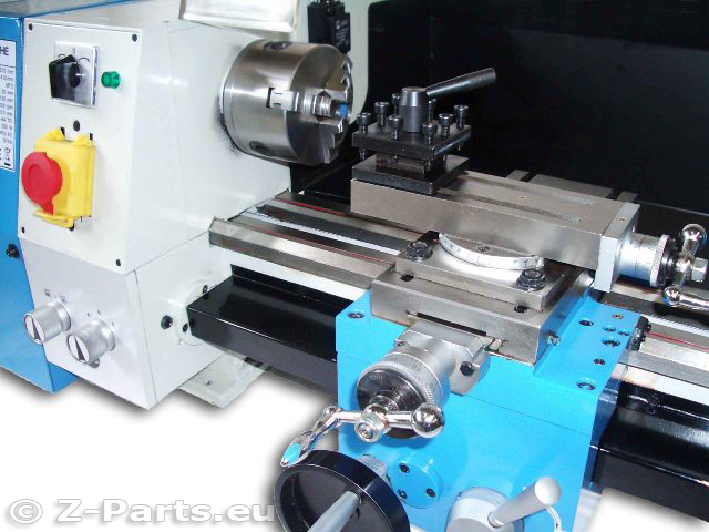 Ausgestattet mit Längsvorschub, Gewindeschneiden Metrisch und Zoll, Spindelabdeckung und Futterschutz, 4-fache Werkzeugaufnahme mit Klemmhebel einfach zum Wechseln, Oberschlitten drehbar mit Winkelskala zum Kurzkegeldrehen.