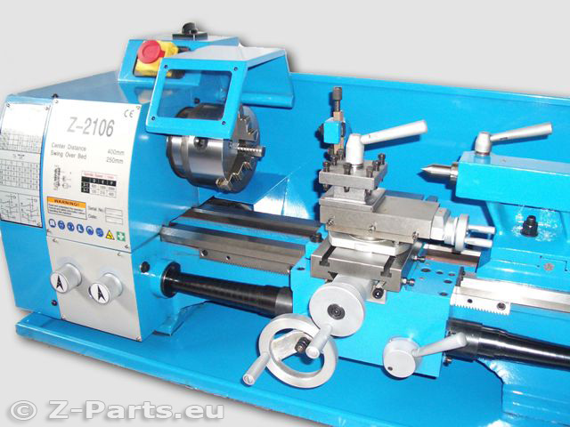 Ausgestattet mit Längsvorschub, Gewindeschneiden Metrisch und Zoll, Spindelabdeckung und Futterschutz, 4-fache Werkzeugaufnahme mit Klemmhebel einfach zum Wechseln, Oberschlitten drehbar mit Winkelskala zum Kurzkegeldrehen.
